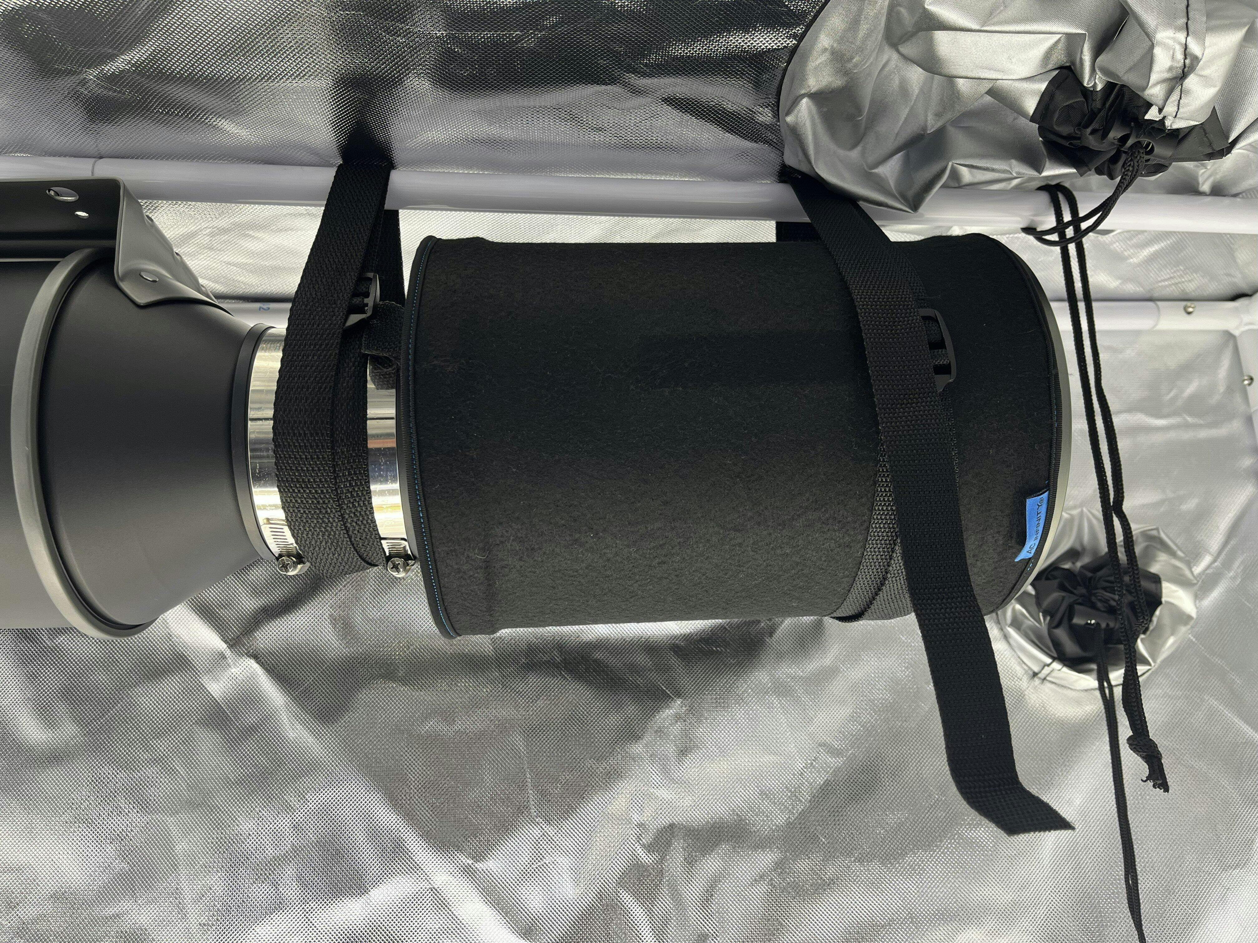 - 4” inline filter designed to block odours and chemicals from escaping grow tents and hydroponics rooms.