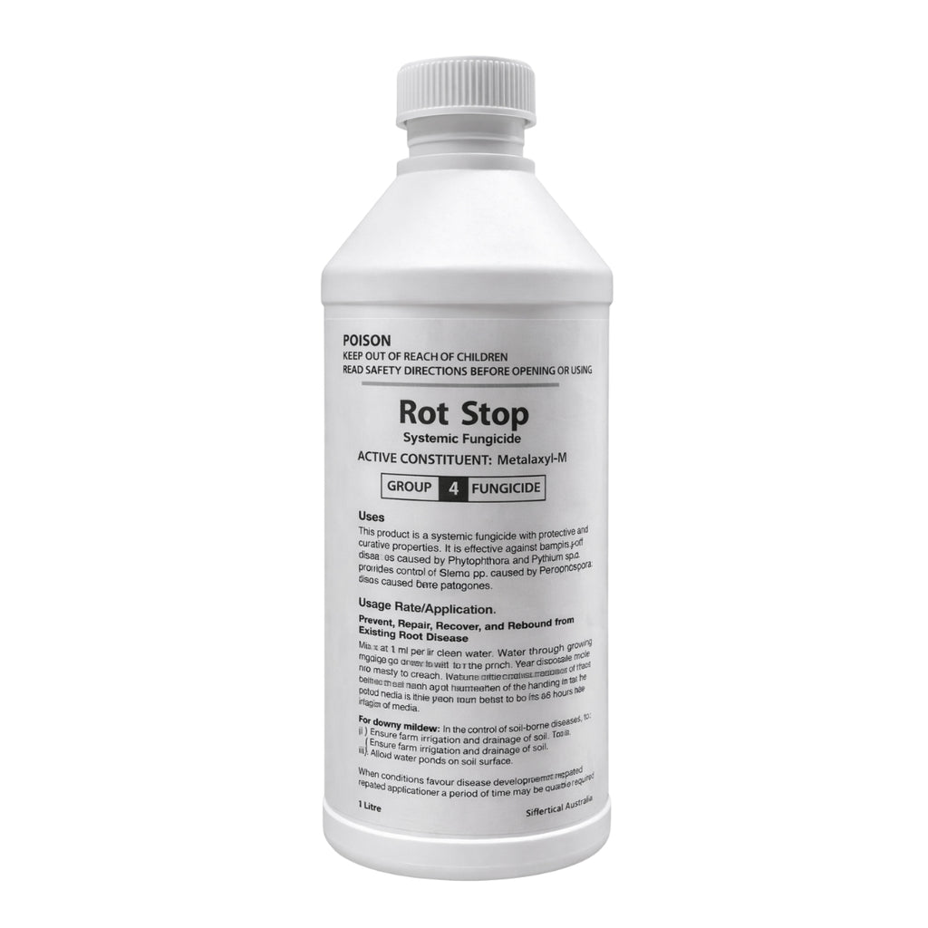 Rot Stop is a systemic liquid fungicide and the direct replacement for Fongarid, belonging to the same fungicide group and mode of action. Formulated in a convenient liquid form, Rot Stop is far more suitable for hydroponic and soil-based growing systems than traditional powder products, offering easier mixing, accurate dosing, and consistent results.