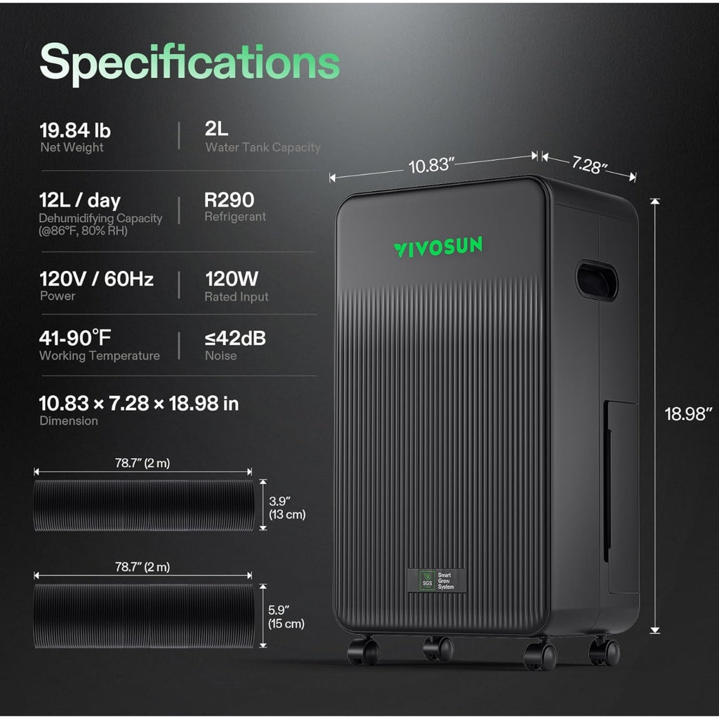 Vivosun AeroDrain D12 Intelligent Environmental Dehumidifier