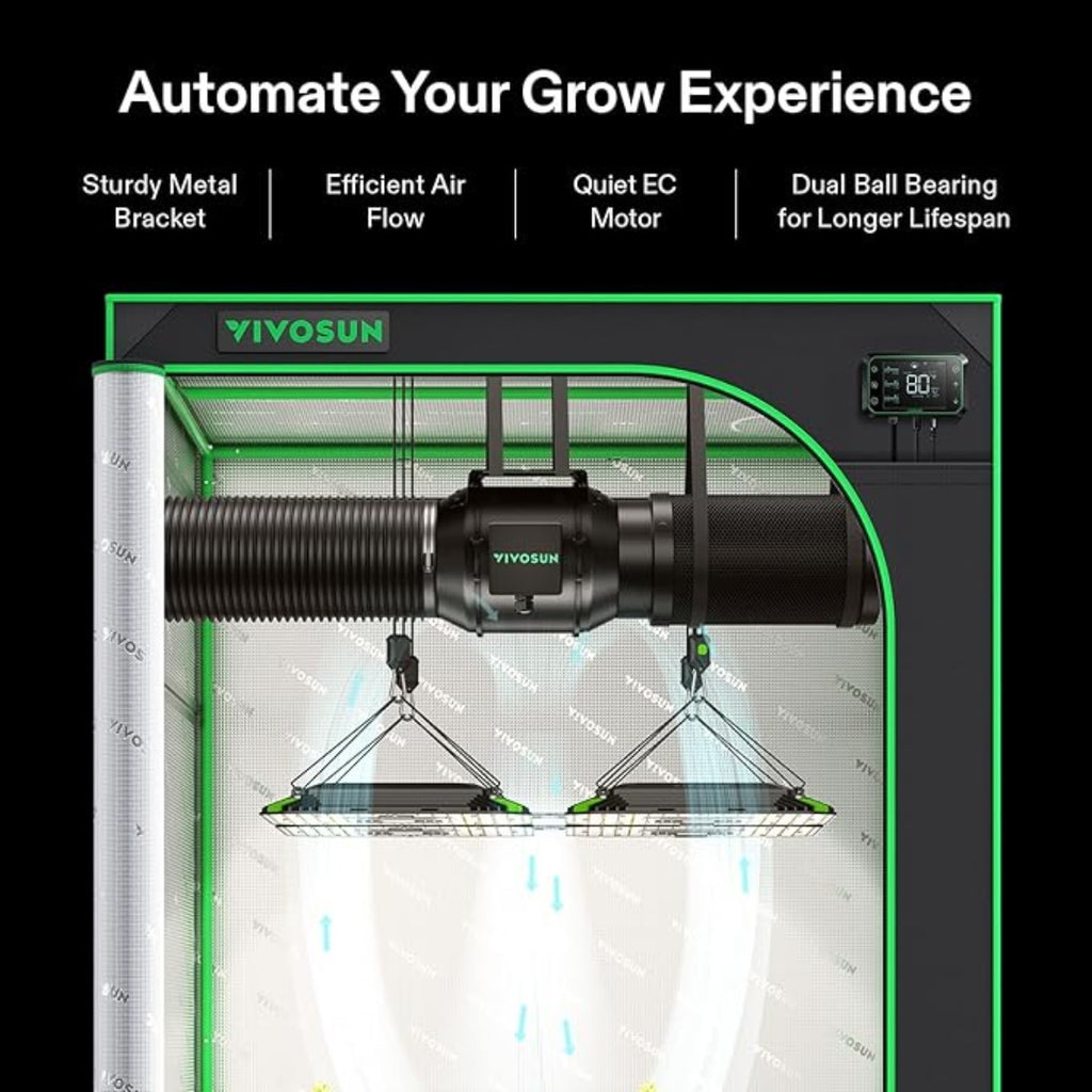 Fully Automated: Program your equipment to automatically take you through each stage of growth – program light intensity, light spectrum, on/off periods, fan speed, and airflow volume, make changes to better suit your plants at any time.