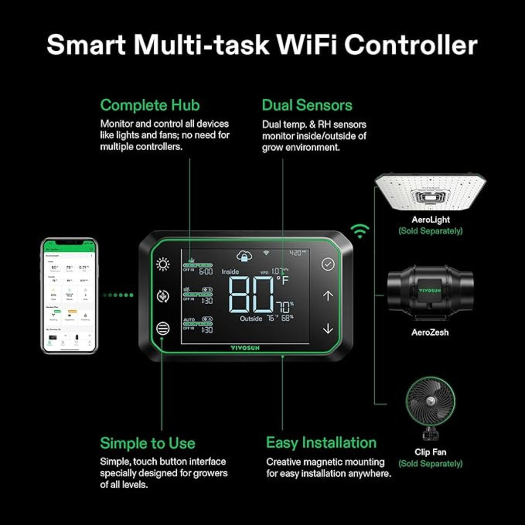 App Controllable: The GrowHub Controller is WiFi-enabled so you can control your equipment from anywhere, anytime via the app; The App expands the controller’s capabilities through Grow Recipes and other extremely powerful settings.