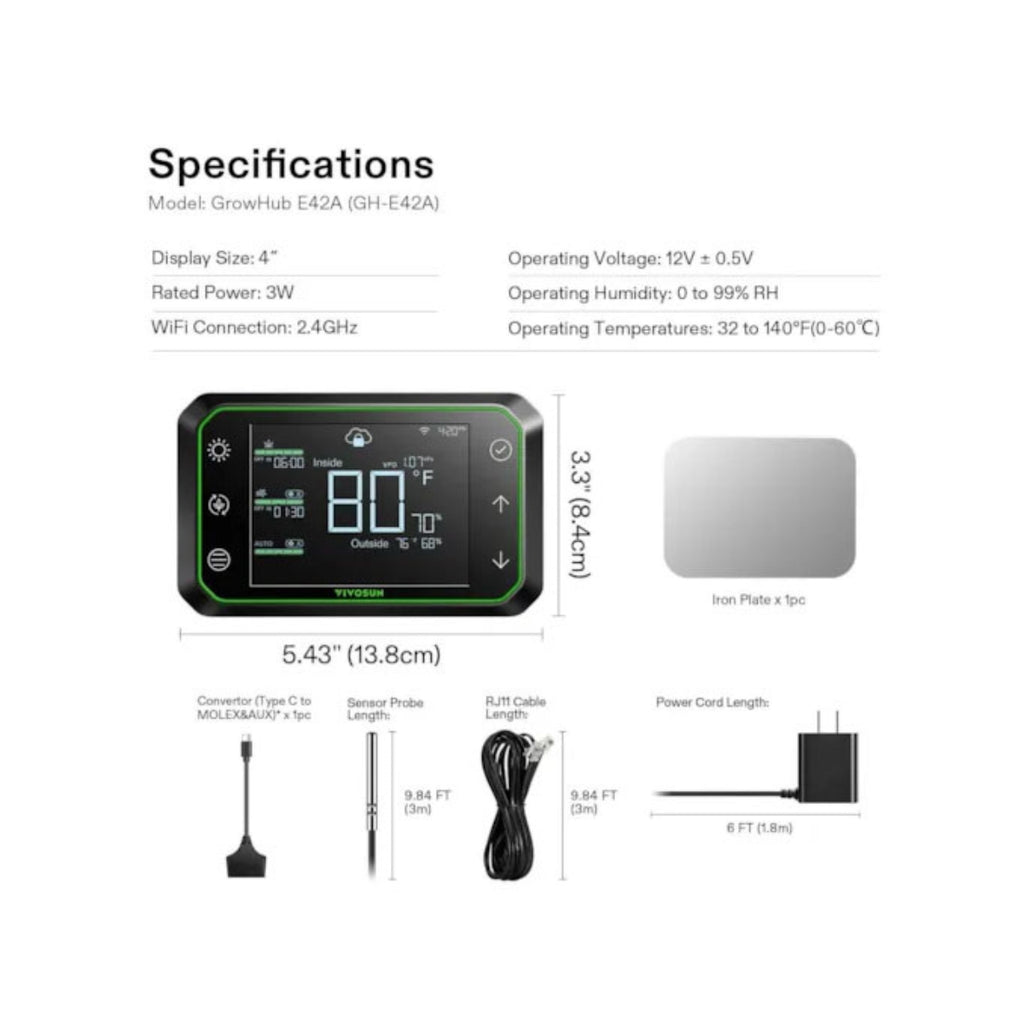 App Controllable: The GrowHub Controller is WiFi-enabled so all programming can be done through your App, wherever you are in the world you will have control over your tent, your equipment, and your environment, the App also expands the Controller’s capabilities through Grow Recipes and other unique settings that make the Controller even more powerful. Please make sure that the Wi-Fi network you connect to is 2.4GHz instead of 5GHz when pairing the GrowHub Controller with your Vivosun app.